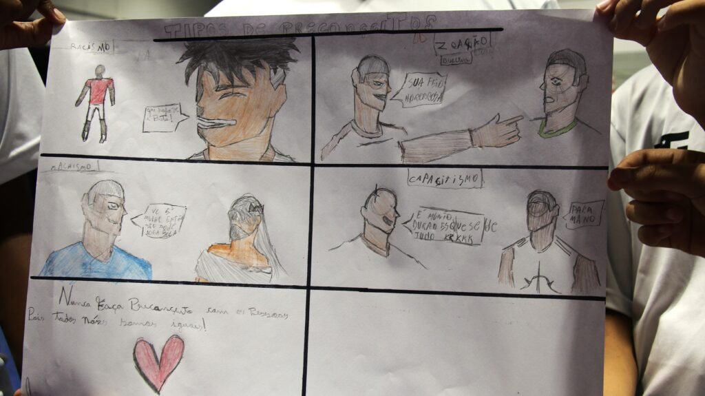 Com o objetivo de evidenciar o “Dia do Livro”, comemorado no próximo dia 23 de abril, feriado, o Departamento Social do Instituto Philippe Coutinho realizou uma atividade voltada à criação de histórias em quadrinhos com os alunos do Projeto Social. Um dos objetivos foi integrar o incentivo à leitura com a produção criativa, possibilitando que as crianças e adolescentes não apenas consumam conteúdos literários, mas também se tornem autores de suas próprias narrativas.